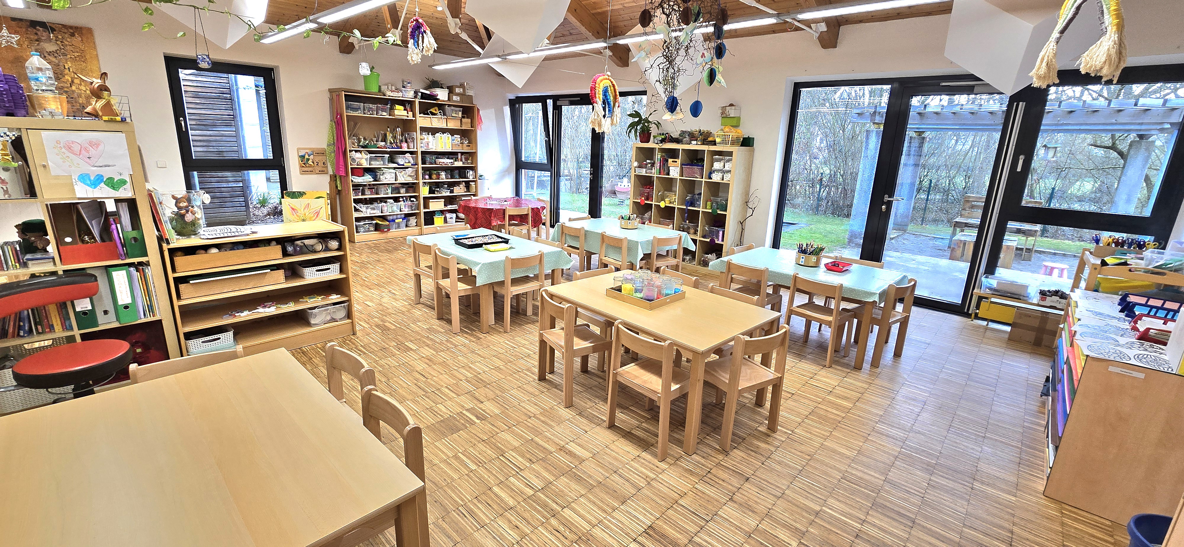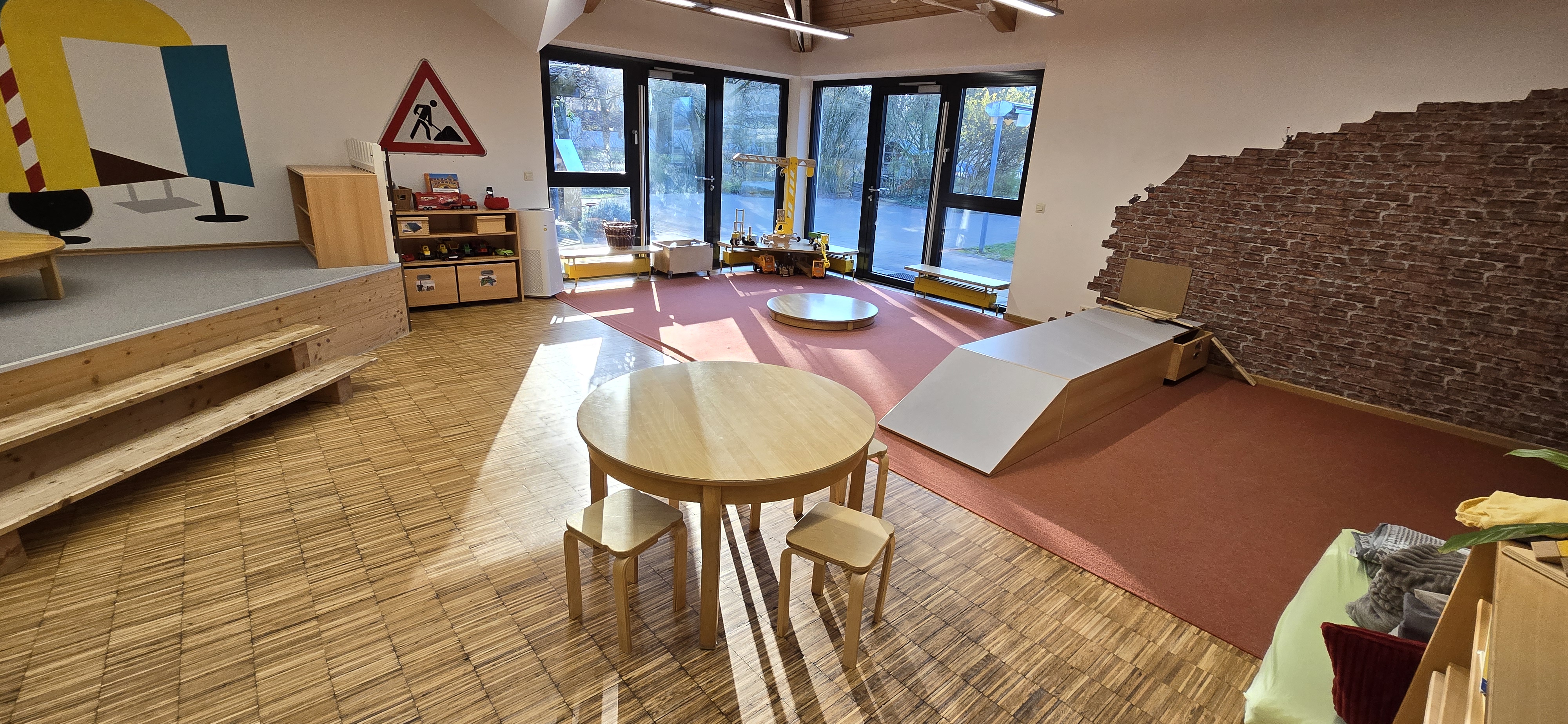 Nebenraum - Schlafraum Ein weiterer Raum ist vom Gruppenzimmer aus direkt zugänglich. Tagsüber wird er zumSpielen genutzt. Während der Mittagszeit dient dieser Raum als Schlafraum für die Kinder. |
